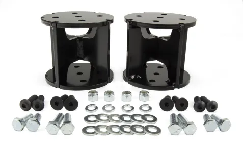 For drivers of lifted trucks, it's common to find that the towing and hauling capabilities of the stock suspension are compromised. With the new Universal Air Spring Spacers from Air Lift, drivers are now able to add a load support solution and restore the full potential of the vehicle. Available in 2 in. straight, 4 in. straight, 6 in. straight, 4 in. angled, and 6 in. angled varieties, the Universal Air Spring Spacers are designed to accommodate most lift kits, up to six inches. With a unique spinal design, the spacers are easy to attach to bellows-style air spring systems, including Air Lift's best-selling LoadLifter 5000 series and LoadLifter 7500 XL, using the provided hardware. With air springs equipped, drivers of lifted vehicles will find that the towing and hauling capabilities of their vehicles are restored. Adding air springs will eliminate many common issues faced when towing and hauling heavy loads, including squat, poor headlight aim, trailer sway, and bottoming out. Drivers and passengers alike will notice that handling, ride quality, and braking power are all greatly improved. Each Universal Air Spring Spacer kit comes with a clear, easy-to-follow, fully illustrated instruction manual to make the installation process easy, clear and simple. As the leader in air suspension products for more than 70 years, Air Lift is committed to delivering quality load support parts that last. The key suspension components have all been torture-tested to ensure the highest quality, longevity, and customer satisfaction. With a limited-lifetime warranty, you can purchase this kit with peace of mind. Take your existing air suspension solution to the next level of safety and comfort with Universal Air Spring Spacers today!