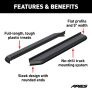 For some, it's more than just a drive. It's about definition -- finding the rush that comes with your hands on the wheel and your foot on the gas -- and it starts by stepping into your vehicle with confidence. ARIES AeroTread running boards give new definition to your drive with their sleek design, full-length treads and flawless finish. They feature unencumbered aluminum construction and a custom contour to redefine your look and offer a solid step up. Made specifically for today's crossover and SUV, ARIES AeroTread running boards are marked for their aerodynamic look and lightweight build. They are constructed from an extruded aluminum base, making them strong and impervious to the elements. Each set of running boards features sleek, curved edges with tapered ends to seamlessly blend with the body of your vehicle. To give you the exact, customized look you want, AeroTread running boards come with one of two front-trim finish options: polished stainless steel or black carbide powder-coated stainless steel. They are also equipped with a 5" wide, hard plastic step pad that runs the entire length of the board, providing a non-skid surface no matter where you place your foot. AeroTread running boards install using a track mounting system to attach vehicle-specific brackets, and pre-existing holes in the vehicle's frame are used to eliminate drilling, speed up installation and ensure stable footing (NOTE: Mounting brackets are sold separately, see the application information to determine which brackets and boards fit your vehicle). The mounting brackets are made from steel and are coated in a powder coat finish for long-lasting dependability. Whatever road you choose, define your drive with ARIES AeroTread running boards.