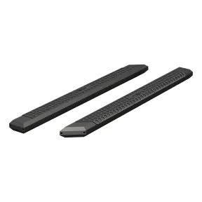 ARIES AdvantEDGE side bars do away with the common, rounded look of other side bars and nerf bars, featuring an angular, eight-sided tube profile and powder-coated all-aluminum construction. The angular edges provide a clear-cut, uncompromising accent for the look of today's trucks. Made from 5-1/2" wide, eight-sided, extruded aluminum tubing, AdvantEDGE side bars are strong, lightweight and impervious to rust, offering a solid step that is built to face the elements and outlast them. They also come with die-cast aluminum end caps and a stamped aluminum tread. The aluminum treads provide a long-lasting, non-skid stepping surface that will not crack or fade in the sun. ARIES AdvantEDGE side bars are also marked for their easy, custom-fit installation. They feature the ARIES VersaTrac mounting system with brackets that are made from powder-coated steel and built for specific vehicles (NOTE: VersaTrac mounting brackets are sold separately; see application information to determine which brackets and side bars fit your vehicle). The high-strength steel brackets mount using pre-existing holes, and the side bars attach to the brackets with heavy-duty hardware and a full-length channel. The VersaTrac mounting system makes installation simple and customizable, allowing the side bars to be swapped out at any time with other side steps or running boards that feature the VersaTrac system. Setting yourself apart is simple with the ARIES AdvantEDGE series. In addition to our AdvantEDGE side bars, we also offer the AdvantEDGE bull bar and AdvantEDGE headache rack, featuring the same all-aluminum construction and eight-sided tube profile. For a fully customized look to match your pickup, AdvantEDGE side bars are available in two finish options, including carbide black powder coat or chrome powder coat.