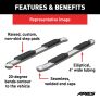 When you start and end your day turning the ignition of your truck, unreliable footing just is not an option. You need a step that can bear weight with ease, provide comfortable footing and look good doing it. ARIES 4" oval side bars are sleek, strong and custom-fitted to be a highly functional extension of your truck. ARIES 4" oval side bars are made with strong 4" elliptical tubing and are available in two different finish options to allow you full customization: polished stainless steel and black powder coat carbon steel. This set of side bars is constructed from 304 stainless steel, meaning high nickel content to be truly stainless. They easily resist rust and corrosion and feature a highly polished finish that is made to last. Something that sets the ARIES 4" oval side bar apart from all others is its blended end caps and OE-style bends. Rather than capping our side bars with a plastic cap, we offer a blended end cap for a smooth, finished appearance. We also equip the ends with a special 20-degree bend and original equipment styling to perfectly contour to your vehicle. ARIES 4" oval side bars are fitted with raised step pads to provide a wide stepping surface. The polypropylene construction will not crack over time, and because it has a textured grip, the surface is highly resistant to slips and skids, even when wet. To add an extra element of class to our oval sides, we also fit each one with a stainless steel insignia bearing the ARIES name. Installation of ARIES 4" oval side bars is quick and easy with custom-fitted mounting brackets and no drilling necessary. These nerf bars fit select model years of the Ford F-150, F-150 Lightning, F-250 Super Duty, F-350 Super Duty, F-450 Super Duty and F-550 Super Duty (see application info to verify fitment).