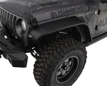 Be ready for anything: Equip your Jeep with Bushwacker Flat Style Fender Flares. They're the first and only flat style flares made to absorb impact using our proprietary Dura-Flex 2000 TPO the thickest, most flexible material available. Flat Style Fender Flares maximize your tire coverage and wheel articulation for intense off-road use. Yet they're carefully engineered to install with a minimum of extra tools and bodywork (see the installation guide for your specific vehicle for details). For example, our mounting brackets bolt straight onto your Jeep for added strength and simpler fitting. Our design integrates neatly with the factory rocker guards, and incorporates DOT-compliant LED side marker lights and fully molded wheel well protection. The flares are 100% UV protected, too, to stop chalking in its tracks. If you want the look and the real-world performance that best fits an American icon, nothing goes with your Jeep better than Bushwacker Flat Style Fender Flares.
