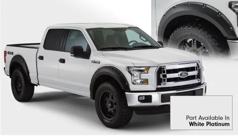 Bushwackers rugged, iconic Pocket Style Fender Flares allow for more tire coverage and more clearance for trucks and SUVs while protecting the vehicle from dirt and debris. These flares are now available pre-finished to match the paint on your new Ford F-150, plus they have the edge trim and stainless steel hardware pre-installed for quick and easy installation and a perfect fit . Made in the USA from sturdy Dura-Flex(R)2000 material, these flares are warp-resistant and tailor made for each application. Despite their bolted-on appearance, these flares install easily with minimal drilling for a secure fit. And since they're ready to install out of the box, there's no waiting on paint, and no hassle with installation.