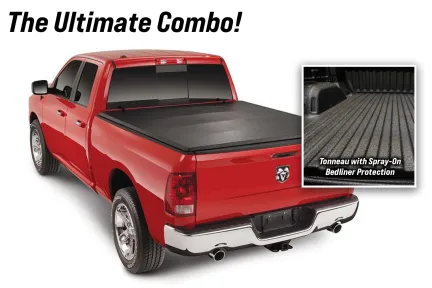 The perfect package for style and durability. This combo deal includes a quality soft tri-fold tonneau to keep your gear covered, paired with a rugged spray-on bedliner that guards against scratches, rust and wear.