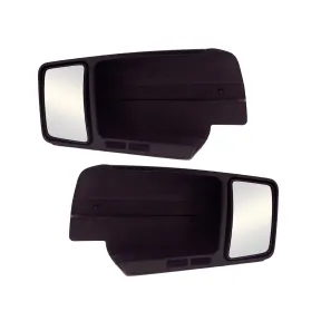 CIPA's Custom Towing Mirrors were designed to fit over standard factory rearview side mirrors, and are available in over 40 exclusive applications to fit a variety of popular truck and SUV models. The CIPA Custom Towing Mirror is durable, aerodynamic, and sleeve fitted to your vehicles specifications. These mirrors will slide snugly over your vehicles existing rearview side mirror, and features an additional adjustable mirror on the outboard end that extends your towing vision, without obstructing your existing vehicle mirror. No tools are required, and no marks or holes are left on your vehicle. The CIPA Towing Mirrors and installation knobs are made with durable ABS plastic known for its strength, rigidity, and unbreakable security. The mirror face is made with scratch-resistant glass for years of unobstructed towing use. The installation wedges are formed from a polypropylene plastic that has excellent long-term shape conformity, and provides years of installation reliability. CIPA Custom Towing Mirrors can withstand the elements to provide increased all-weather Towing Vision capability. This kit includes 1 driver side mirror, 1 passenger side mirror, 4 installation knobs, 2 left hand installation wedges, 2 right hand installation wedges, 4 felt strips, and illustrated installation instructions. Not all hardware will be required during installation. Please refer to the instructions for information on what pieces your vehicle will require. Note: These mirrors will NOT fit over STX style or Super Duty mirrors. Expand your Horizons