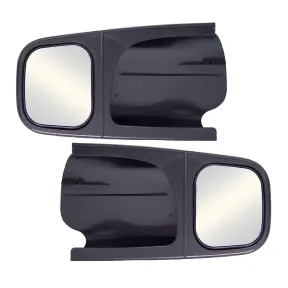 CIPA's Custom Towing Mirrors were designed to fit over standard factory rearview side mirrors, and are available in over 40 exclusive applications to fit a variety of popular truck and SUV models. The CIPA Custom Towing Mirror is durable, aerodynamic, and sleeve fitted to your vehicles specifications. These mirrors will slide snugly over your vehicles existing rearview side mirror, and features an additional adjustable mirror on the outboard end that extends your towing vision, without obstructing your existing vehicle mirror. No tools are required, and no marks or holes are left on your vehicle. The CIPA Towing Mirrors and installation knobs are made with durable ABS plastic known for its strength, rigidity, and unbreakable security. The mirror face is made with scratch-resistant glass for years of unobstructed towing use. The installation wedges are formed from a polypropylene plastic that has excellent long-term shape conformity, and provides years of installation reliability. CIPA Custom Towing Mirrors can withstand the elements to provide increased all-weather Towing Vision capability. This kit includes 1 driver side mirror, 1 passenger side mirror, 2 installation knobs, 2 universal installation wedges, 2 felt strips, and illustrated installation instructions. Expand your Horizons