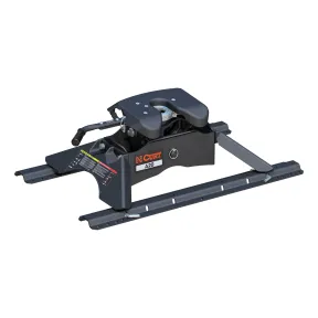 The CURT A20 5th wheel hitch offers smoother, quieter towing for your home-away-from-home, combining the patented technology of our A-series, an easier mounting system and the power of a 20K 5th wheel hitch. Like our A16 hitch, this 20K 5th wheel hitch uses a patented cast yoke to allow for unimpeded head movement, while providing exceptional stability for the trailer. The yoke has a set of poly-torsion inserts to suppress shock loads and reduce excessive noise, and the head features high-strength, interlocking jaws to give the trailer stability and the freedom to pivot and swivel as needed. The A20 5th wheel hitch is also engineered for easier installation. The legs are equipped with two pins to properly align with the mounting holes, and they have easy-access mounting bolts for ergonomic tightening. The 5th wheel head also has a fast, one-pin removal system to make installation and removal from the truck bed easier. This 20K 5th wheel includes a set of industry-standard 5th wheel rails to mount onto custom 5th wheel brackets (brackets sold separately). Once installed, the A20 is fast and simple to operate. It features an extra-wide head opening to increase the coupling area for the trailer, and it has a lockable, single-throw handle that self-resets to the ready-to-couple position after uncoupling. To make coupling even easier, it is equipped with a coupling indicator that is visible from the truck cab. The indicator shows the status of the connection and eliminates the need for you to check multiple times while coupling. To protect the A20 5th wheel hitch against rust, wear and whatever other threats might impede your cross-country tour, it comes with a black carbide powder coat finish and a limited lifetime warranty. We also test the A20 for safety in accordance with SAE J2638 to ensure reliability for the road ahead.