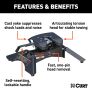 The CURT A30 5th wheel hitch offers smoother, quieter towing for your home-away-from-home, combining the patented technology of our A-series, an easier mounting system and the power of a 30K 5th wheel hitch. Like our other A-series hitches, this 30K 5th wheel hitch uses a patented cast yoke to allow for unimpeded head movement, while providing exceptional stability for the trailer. The yoke has a set of poly-torsion inserts to suppress shock loads and reduce excessive noise, and the head features high-strength, interlocking jaws to give the trailer stability and the freedom to pivot and swivel as needed. The A30 5th wheel hitch is also engineered for easier installation. The legs are equipped with two pins to properly align with the mounting holes, and they have easy-access mounting bolts for ergonomic tightening. The 5th wheel head also has a fast, one-pin removal system to make installation and removal from the truck bed easier. This 30K 5th wheel mounts to any industry-standard 5th wheel rails, using the included 5th wheel legs. Once installed, the A30 is fast and simple to operate. It features an extra-wide head opening to increase the coupling area for the trailer, and it has a lockable, single-throw handle that self-resets to the ready-to-couple position after uncoupling. To make coupling even easier, it is equipped with a coupling indicator that is visible from the truck cab. The indicator shows the status of the connection and eliminates the need for you to check multiple times while coupling. To protect the A30 5th wheel hitch against rust, wear and whatever other threats might impede your cross-country tour, it comes with a black carbide powder coat finish. We also test the A30 for safety in accordance with SAE J2638 to ensure reliability for the road ahead.