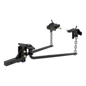 Your route is planned and the trails are calling, but before you can cover any ground, you need to start with a solid connection between your tow vehicle and trailer. The CURT round bar weight distribution hitch with integrated lubrication offers a smooth ride and level towing with its heavy-duty components and built-in lubrication system. From travel trailers to popup campers, the CURT WD hitch is the perfect camping companion to let you Bring It. The strength of the round bar WD hitch begins with its heavy-duty, formed steel head. The formed construction allows for a precise design and supplies the durability needed to manage the weight of heavy trailers. Something unique to the weight distribution hitch is its grease zerk fittings, built directly into the head, allowing for easy, continuous lubrication at the spring bar mounting location. The spring bars are installed from the underside of the WD head and are made with forged steel for optimum strength. Like other CURT weight distribution hitches, the round bar hitch comes with a highly adjustable shank and chain hookup brackets for the perfect amount of tension to level the load. The shank fits any 2" x 2" receiver tube opening, making it compatible with most class 3, class 4 and class 5 trailer hitches. The head is also compatible with our 2-1/2" weight distribution shanks to match the heaviest of class 5 hitches. The hookup brackets and spring bars of the CURT WD hitch use chains and a simple snap-up design for easy setup and adjustment. This particular round bar weight distribution hitch offers a towing capacity ranging from 5,000 to 6,000 lbs. GTW and 500 to 600 lbs. TW. It comes with installation hardware, though a trailer ball must be purchased separately. The built-in sway control attachment tabs on the head allow it to readily accept one or two sway control units #17200. To protect this WD hitch on the way to your next destination and beyond, it also comes with a durable carbide powder coat finish.