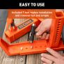 • Orange rubber-coated arms protect the wheel's finish