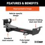 A CURT front trailer hitch allows you to use the front end of your vehicle for a variety of towing applications. They can be used for mounting a winch, a snow plow, a number of towing accessories and can even be used for some trailering applications. When space is limited, a front trailer hitch is commonly used to hold a cargo carrier, freeing up space inside the vehicle for extra cargo and making the rear mount receiver available to pull a trailer. At the boat ramp, your boat trailer can be hitched up to the front receiver hitch, giving you better control over the trailer as you launch. Some of the other accessories that can be used with a front tow hitch are the CURT winch mount, step pad, license plate holder, spare tire mount, skid shield and tow hooks. All CURT front trailer hitches provide a useful receiver tube to accept a 2" x 2" shank, and they are commonly used on trucks, vans and SUVs. This front trailer hitch is rated for 5,000 lbs. GTW and 500 lbs. TW. It also has a straight-line pull rating of 9,000 lbs. It is designed to be a custom trailer hitch for certain years of the Chevrolet Silverado 2500 HD and 3500 HD and GMC Sierra 2500 HD and 3500 HD (to verify your vehicle compatibility, see application info). It comes with all necessary hardware for a complete installation and is backed by a limited lifetime warranty.