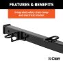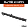 CURT hitch adapters can be used for many different purposes when hitching up a trailer. Whether a ball mount shank is too small or too large to fit into a receiver tube, a CURT adapter can make up the difference. Our adapters are built with exceptional strength and designed to be precisely fitted for their application. We carry trailer hitch adapters to accommodate both receiver tube openings and shanks of 1-1/4", 2" and 2-1/2" dimensions. CURT adapters also come in various lengths to allow more clearance for a cargo carrier, bike rake or spare tire. This specialized CURT receiver adapter converts a 2-1/2" x 2-1/2" receiver tube opening to a 2" x 2" opening. It offers a gross trailer weight capacity of 4,500 lbs. and a tongue weight capacity of 450 lbs., and when combined with a weight distribution hitch, it offers 6,000 lbs. GTW and 600 lbs. TW. It also has the option to be cut down from its 34" length to 24", increasing its weight carrying capacity to 6,000 lbs. and its tongue weight to 600 lbs. When combined with a weight distribution hitch, the 24" length maxes out at 8,000 lbs. GTW and 800 lbs. TW. This hitch adapter also comes with integrated safety chain loops and an electrical bracket. All CURT adapters are constructed using our quality manufacturing processes. We CNC-form each unit, weld it together using advanced robotic systems and then mechanically descale every surface to make each adapter smooth to accept a finishing coat. To finish off this adapter, we give it a durable gloss black powder coat finish to ensure it has excellent rust, chip and UV resistance.