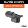 There are several different types of connectors used to supply power from a tow vehicle's electrical system to a trailer's wiring system. Some trailers only need the bare essentials -- running lights, brake lights and turn signals -- while others require a connection for reverse lights, electric brakes and auxiliary power. With connectors ranging from simple to complex, it may be the case that the connection between your vehicle and your trailer is not a perfect match. For example, your truck may be equipped with a 6-way round socket, but your trailer may have a 4-way flat plug. For this very common problem, CURT offers a quick and simple solution in the form of an electrical adapter. An adapter is an electrical device that allows a connection to be made between a mismatched trailer plug and vehicle socket. It easily plugs in your vehicle's electrical socket and usually requires no additional wiring. CURT offers an array of adapters to accommodate most types of plugs and sockets, including 4-way flat, 4-way round, 5-way flat, 6-way round, 7-way RV blades and more. This electrical adapter is designed to adapt a 6-way round vehicle socket to fit a 4-way flat trailer plug. It features quality plastic construction and requires no splicing. All CURT wiring and electrical products come with a one-year limited warranty to give you the assurance you need to tow with confidence.