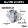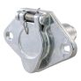 Like trailer hitches and ball mounts, electrical connectors range all over the board in shape, size and capability, but no matter what your trailer's electrical functions are, you need a solid connection to keep the power flowing and ensure safety on the road. CURT electrical connectors are designed and manufactured to give you a reliable connection every time you plug in your trailer. This 4-way round connector is designed to supply power for tail lights, turn signals and brake lights, as well as a ground connection. It features durable die-cast metal construction and has concealed terminals and a spring-loaded steel cover to resist damage from dust and water. This 4-way round connector is a female-end socket, specifically designed for the vehicle side of the connection.