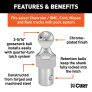 - Forged and machined steel gooseneck ball with chrome-plated finish