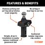 - Durable carbide black powder coat finish on base and chrome plating on ball