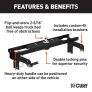 - Heavy-duty handle can be positioned on either side of the vehicle
