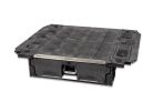 The DECKED in-vehicle storage system offers secure, weatherproof and organized storage with a sliding drawer toolbox system for pick up trucks. 100% American made, the DECKED system features two secure, full bed-length drawers capable of carrying 200lb each that glide effortlessly on industrial-grade wheels beneath a 2,000lb payload-rated deck. Constructed from rugged High Density Polyethylene (HDPE) and steel, owners get ergonomic access to tools and equipment while maintaining full use of the truck bed. DECKED systems are perfect for contractors, painters, carpenters, electricians, surveyors, plumbers, handyman services and the outdoor enthusiast who need their truck to have secure storage bins that are easy to access. The drawers slide out at waist height while still allowing the owner full use of their truck bed. The system, once assembled, is easily installed and removed. Accessories are available for customizable storage.