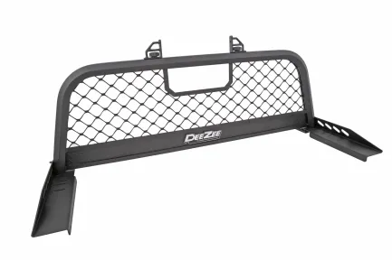 - Dee Zee Cab Rack-Helps protect the rear of the pickup s cab area. 100% aluminum construction provides non-rusting strength. Rear window protection screen consists of heavy duty ultra mesh. Integrated channel system offers endless accessory possibilities. Installs easily by bolting into vehicles stake pockets. Texture Black powder coat