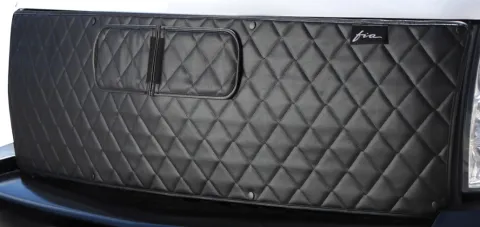 WF920 Series custom fit winter fronts and bug screens are designed to provide benefits in both winter and summer. Made from all weather heavy duty quilted vinyl, the winter front promotes better fuel economy. It aids in providing faster engine warm up and interior heat. It keeps diesel engines at optimal operating temperatures with adjustable air flow doors. In the spring and summer, the bug screen, made from heavy duty tear resistent mesh, protects the rad and grille from bugs, stones and debris. The winter front and bug screen are interchangeable using Fia's patented Stick A Stud no drill installation system. Using a 3M adhesive backed stud fastener, just peel and stick to surface and snap on either the winter front or bug screen. No tools are required for installation. Optional screw on hardware kit included.