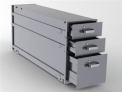 Heavy-duty 56 inch long three drawer cabinet can be installed on the floor behind the bulkhead side door pull out