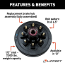 For peace of mind on the road, replace your brake hub with Lippert. This brake drum hub assembly fits a 7,000-lb. axle. It’s made from solid, durable iron and has an 8 on 6.5" bolt pattern with a 1/2" stud. All our brake hub assemblies come with a limited one-year warranty on the hub components. Please consult your original equipment before purchasing. Be sure to inspect and maintain your equipment periodically for optimal performance.