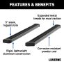 LUVERNE SlimGrip running boards combine rugged style and durable construction to make the perfect side step for any truck. They feature powder-coated aluminum construction, expanded metal treads, a sleek profile and angular end caps. They are also equipped with the VersaTrac system for easy customization, and each application installs with no drilling required (NOTE: Mounting brackets are not included with this particular package and must be purchased separately). Whether you use your truck for hard work, off-road fun or a little of both, SlimGrip running boards are up to the task. They are made with 5052 aluminum alloy to be strong, lightweight and highly resistant to corrosion. They are also coated in a textured black powder coat finish that not only enhances corrosion resistance but also helps hide minor scratches, scuffs and grime. For maximum traction on the trail or on the jobsite, each SlimGrip running board is built with expanded metal treads. These non-skid treads offer fleet-approved safety when entering or exiting your truck, and their metal design makes them highly durable. The open treads also allow dirt and snow to pass through, keeping the inside of your vehicle clean. In addition to safety, these aluminum running boards are also constructed to add an aggressive look to your truck. They feature a 4-3/4" width for a sleeker look compared to our Grip Step running boards, and the hardened ABS end caps are angled for a rugged finish. SlimGrip running boards are also fast and easy to install. They mount with the VersaTrac system, using a universal channel and vehicle-specific brackets for a custom fit (brackets not included). Each set installs with no drilling required, and the brackets allow any set of running boards or side steps with the VersaTrac system to be installed on the vehicle without any additional brackets or hardware. This makes installation simple and allows for further customization opportunities in the future.