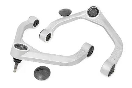 Durable One-Piece Design. Take your truck to the next level with Rough Country's most durable Upper Control Arm to date! Rough Country's Forged Upper Control Arms feature a solid, 1-piece design made of forged aluminum for superior strength and durability. This forged design outperforms all other types of arm construction, with no welding weak spots that could bend or break. High Strength Ball Joints. Rough Country's Forged Upper Control Arms use POM ball joints which reduces metal-to-metal contact for less maintenance and longer service life versus standard or OE replacements. These Ball joints feature a POM ball race for an extremely low co-efficient of friction and an oversize ball diameter reduces load and improves range of motion in a fully greaseable design. Rough Country's Forged Upper Control Arms also feature durable rubber bushings rubber bushings for superior quality and durability. Installation. Featuring a 100% bolt-on installation process, an estimated timeframe of 3-4 hours is recommended to complete this full installation. This full kit can be installed at home and can be completed efficiently and quickly! Limited Lifetime Replacement Warranty. Rough Country's Forged Aluminum Control Arms are backed with a limited lifetime replacement warranty towards manufacturer defects. As such, the product is protected from structural and workmanship damage after the date of purchase. With our industry-leading warranty give yourself peace of mind when using Rough Country's Suspension products!