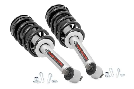 Do you want a great looking lifted truck that still rides like the day you bought it? Take your truck to new heights while preserving ride quality with Rough Country's N3 Performance Lifted Struts. Our Nitrogen charged, loaded struts add ride height to your truck while maintaining a smooth, factory-like ride. Each strut includes a pre-loaded coil for lightning-fast installation without the need for complicated strut disassembly. Rough Country's Performance N3 Struts feature a massive bore and chrome-hardened piston rod with leak-proof piston seal for exceptional durability during off-road use. Each strut is specifically tuned for its intended application and includes a variable dampening system for outstanding handling and control on all road conditions. These Performance N3 Struts offer improved tire contact with the road for increased stability and performance. These struts are engineered to fit perfectly on each intended application, and feature a pre-installed coil spring for easy installation without the need for strut disassembly. Simply remove your factory strut and replace with this easy, convenient system. The result is an increased ride height that mimics the factory responsiveness and handling of the OE strut. Includes a 3-year Limited Warranty.