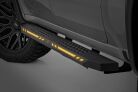 Aggressive Style Meets Everyday Functionality: Upgrade your truck's look and performance with Rough Country's AC2 Running Boards. These premium cab-length steps combine rugged durability, modern styling, and practical convenience in one sleek package. Built for Strength and Style: Crafted from heavy-duty, one-piece aluminum, the AC2 Running Boards deliver exceptional strength without the weight. A black powder-coated finish offers superior corrosion resistance, shielding against rust, wear, and harsh weather. Maximum Accessibility: Easily enter and exit your truck thanks to the wide step surface and lowered profile, perfect for lifted vehicles or daily drivers alike. The cab-length design offers full coverage and enhances your truck's side profile with clean, aggressive lines. Integrated Illumination: Stay visible and stand out with built-in LED lighting. Customizable LED Output lets you choose between amber or white via an internal switch, while Automatic Activation engages the lights when your door opens, thanks to a built-in magnetic sensor. Enhanced Protection and Clean Looks: The AC2 boards also provide a barrier against road debris, rock chips, and mud while covering up exposed frame components for a seamless, finished appearance. Body Lift Compatible: No need to worry about aftermarket modifications, these boards are fully compatible with or without a body lift, ensuring a perfect fit across various setups. Hassle-Free Installation: Install with ease using Rough Country's simple, bolt-on design. No cutting, welding, or drilling required. Warranty You Can Trust: Backed by Rough Country's Limited Lifetime Warranty on structural components and a 1-year warranty on the finish for total peace of mind.