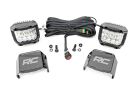 Command the Dark: Experience the latest in LED technology with Rough Country's 3" Wide Angle LED Kit! Designed for off-road enthusiasts, these innovative LED cubes provide an unobstructed panoramic flood of LED illumination, ensuring unparalleled visibility on nighttime trails. Rough Country's Wide Angle LED Kit features two high-performance 3-inch LED pods with a specially engineered panoramic design, delivering an extra-wide 140-degree flood pattern for maximum illumination. Equipped with top-of-the-line OSRAM LEDs, these units boast an impressive 13,500 lumens output! Built for durability, these all-weather lights come with an IP67 waterproof rating and a rugged, die-cast aluminum housing, ready to withstand the harshest conditions. Each kit includes a premium, flat-wound, braided wiring harness with inline fuse and on/off switch for seamless installation. Plus, enjoy peace of mind with a 3-year warranty!