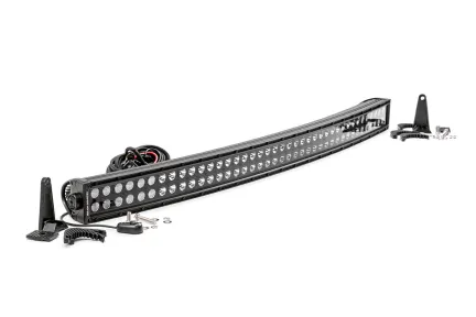 Command the Dark: Light up the night and stay on the trails longer with Rough Country's 40-inch Curved Dual Row CREE LED Light Bar. This powerful light bar offers 19,020 lumens of illumination and 240 watts of energy-efficient output, all housed in a stylish, modern frame. Featuring 80 high-intensity 3-watt CREE LEDs, it delivers superior brightness and durability for any adventure. The sleek black panel design complements vehicles with black accents, such as grilles, wheels, bull bars, or steps. Designed for all-weather performance, this light bar comes with a durable die-cast aluminum housing, ensuring maximum strength and heat dissipation. It s also backed by an IP67 waterproof rating, providing reliable performance even in harsh conditions. Installation is made simple with the included premium, flat-wound wiring harness, complete with an on/off switch for easy operation. The light bar also features Rough Country's Light Bar Noise Silencers, designed to eliminate unwanted hums, whistles, and wind noise typically found in mounted LED light bars. This light bar includes both end mounts and adjustable base mounts, offering multiple mounting options for maximum versatility. A snap-on cover protects the lens, while Moisture Breather technology reduces moisture build-up inside the light. Plus, it s all backed by a 3-year warranty for peace of mind.