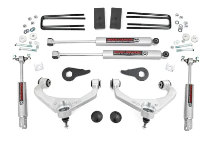 Rough Country's 3.5in No-Cut Kit offers easy installation and aggressive good looks at an incredible value. Take your truck to new heights with this excellent option for GM HD Models. This kit features a set of high-quality, tubular Upper Control Arms with a reinforced gusset plate and durable rubber bushings. These arms are designed to promote a factory-like geometry by keeping the ball joint at optimum angles after lifting. This design allows for an improved, full range of motion from the ball-joint, with less stress, wear and tear. This kit also features a set of durable, forged torsion bar keys, offering uncompromising strength and rigidity over factory keys. A set of front and rear N3 Nitrogen-charged shocks are also included in the kit, giving your truck incredible ride-quality both on and off-road. Once installed, this kit gives your truck plenty of ride height for up to 33in tires while offering a clean, level look from front to rear. This all-inclusive kit comes with everything you need, and installation is a piece of cake compared to other kits on the market! Featuring a 100% bolt-on installation process that requires zero cutting or drilling, this kit can be installed using common tools in a home garage, and allows the truck to be returned to stock at any time if so desired. Best of all this kit features Rough Country's Lifetime Replacement Warranty.