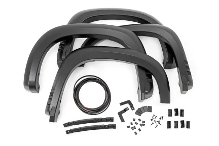 Rough Country's SF1 Fender Flares help you get the tough-looking finishing touch that your build deserves with a one-of-a-kind design. These flares complement the truck's body lines offering a clean look that will turn heads. The SF1 flare design gives the perfect amount of additional tire coverage for an oversized wheel and tire package and feature an integrated rear "mud catcher" to help reduce tire sling down the truck side. They are easy to install on your Chevy Silverado 1500, with excellent fitment right out of the box and includes all necessary hardware. The construction of these flares is from a durable ABS material that is both UV resistant for an uncoated install or paint-ready for a custom color match look. Not only will you get the utility you need from these flares, but you'll also have a unique and aggressive look for your truck. Whether you're looking for functionality or an accessory to tie your lift, wheels and tires together, Rough Country's SF1 fender flares deliver on all fronts.