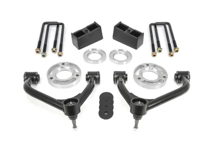 Last fall we announced our new leveling and SST lift kit offerings for the all-new GM 1500 trucks. We specifically did not include the factory lift kit-equipped GMC  AT4  and Chevy Silverado Trail Boss. The  AT4/Trail Boss are factory equipped with a 2" front lift. This front lift includes a longer front shock/strut assembly. When combining a traditional leveling kit on these factory lifted trucks, several issues present themselves including binding problems with the factory control arm ball joint and contact concerns with the lower strut/CV axle assembly. The 69-3920 SST Lift Kit works with the factory 2" front lift. This kit includes a top mount strut spacer along with a pre-load spacer to limit droop and the same premium grade upper control arms now available in our 66-3921 leveling kit. OE style 3" tall cast iron rear lift blocks and rear bump stop extension cups are also included to create a true  AT4/Trail Boss-specific bolt-on lift kit that provides 2" of front lift and 1" of rear lift. This new lift kit concept is similar to our successful TRD Pro Plus 2 SST Lift Kit which is also engineered specifically to work with that factory OE suspension lift. Your trust in ReadyLIFT to provide high-quality, precision engineered products is extremely important to us. You can be assured that this all-new SST lift kits are the absolutely most reliable and best performing suspension upgrade option for the  AT4/Trail Boss trucks. AT4 - Max tire 305/55-20, 20x9 0 offset wheel Trail Boss - Max tire 295/65-20, 20x9 0 offset wheel NOTE: Use of Auto 4 HI feature not recommended.. NOTE: This GM 1500 kit is NOT COMPATIBLE with vehicles equipped with rear composite mono-leaf springs. The mono-leaf is easily identifiable the U-bolt is round/circular around the top of the leaf spring. This kit only works with vehicle equipped with traditional steel leaf springs identified by square U-bolts. NOTE: Not compatible with Sierra AT4X or Silverado ZR2 Edition.