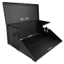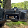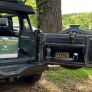 Rock Slide Engineering’s newly designed, Patent No. US D966173, aluminum Tailgate Table is perfect for when you’re out running the trails and need to break for lunch. We use a state-of-the-art automated powder coat system to for a textured black topcoat. It only takes up 1-inch of storage space when the table is put away. Its 2-tier design gives you extra surface area for when you are cooking and will fit a 17-inch Blackstone propane grill. This product also features a bottle opener, garbage bag holder, and will support up to 100 lbs. We have incorporated heavy-duty magnets that will position your table correctly and prevent rattling from inside the Jeep. For easy installation, we use the factory provided attachment points on the JL Jeep. The Bronco and JK Jeep will be installed with sheet metal screws that are included in every tailgate table hardware kit. When you are ready to hit the trails again, quickly fold your table up.