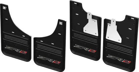 Gatorback CR ZR2 Logo Mud Flaps - Black/AL For 22-25 Silverado 1500 ZR2 / Bison; Front & Rear