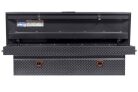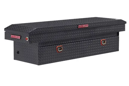 Introducing the re-designed WEATHER GUARD Saddle Box, featuring One Key Simplicity, Improved High Security Locking System, and now PowerSync Capable. The Model 127-6-03 is an aluminum truck tool box for full size trucks and is powder coated in a gunmetal gray ARMOR TUF finish ensuring years of dependability. The box features the new push button lock that can code multiple boxes on a truck or entire fleet to the same key. The improved high security locking system provides unmatched protection. The box is now compatible with the new PowerSync interior lights and remote keyless entry accessories.