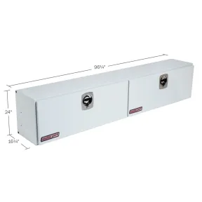 Jumbo-size your storage with the Model 297-3-02 steel Super-Side Truck Box featuring a Brite White ARMOR-TUF Powder Coat finish that ensures years of dependability and has a storage capacity of 21.4 cu ft. Now delivering greater protection against weather and vandalism, these boxes offer quick access to valuable tools, equipment and parts while keeping the truck bed open for supplies.