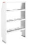 Adjustable van shelving units help maximize van storage customization and capacity. Model 9373-3-03 includes 4 shelves and measures 60 in high, 36 in wide and 13-1/2 in deep when assembled. New design adjustable shelves are deeper to hold more tools and equipment and have captive nuts at each corner for easier assembly and quieter operation. Accessory mounting holes in the shelves eliminate the need for mounting brackets or drilling. Manufactured of heavy gauge steel and fully hemmed for extra strength and durability. Includes two tapered end panels and a set of four adjustable dividers for each shelf.