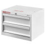 Accessories create a custom storage solution that securely organizes items that need to be located quickly and easily. The mechanics grade Model 9912-3-02 Cabinet measures 12 in high, 16 in wide and 14 in deep. Latches on each drawer stay closed even if cabinet is unlocked. This 2 drawer cabinet also features easy-to-grip handles, and smooth ball-bearing rollers.